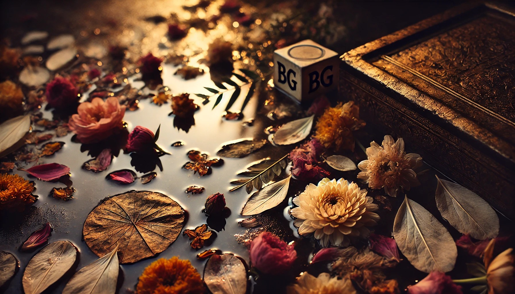 As pétalas, espalhadas por todo o chão, são um reflexo de sua alma. Algumas estão ainda vibrantes, como se o toque da luz do entardecer fosse capaz de manter um pouco de sua beleza intacta, enquanto outras estão desbotadas e secas, a fragilidade de seu ser exposta pela passagem do tempo. Elas não têm mais o perfume das flores vivas, mas ainda carregam em sua essência a lembrança do que foram, e, como ela, estão ali, aguardando, aguardando o vento que as levará, esperando o movimento que as retirará da quietude.