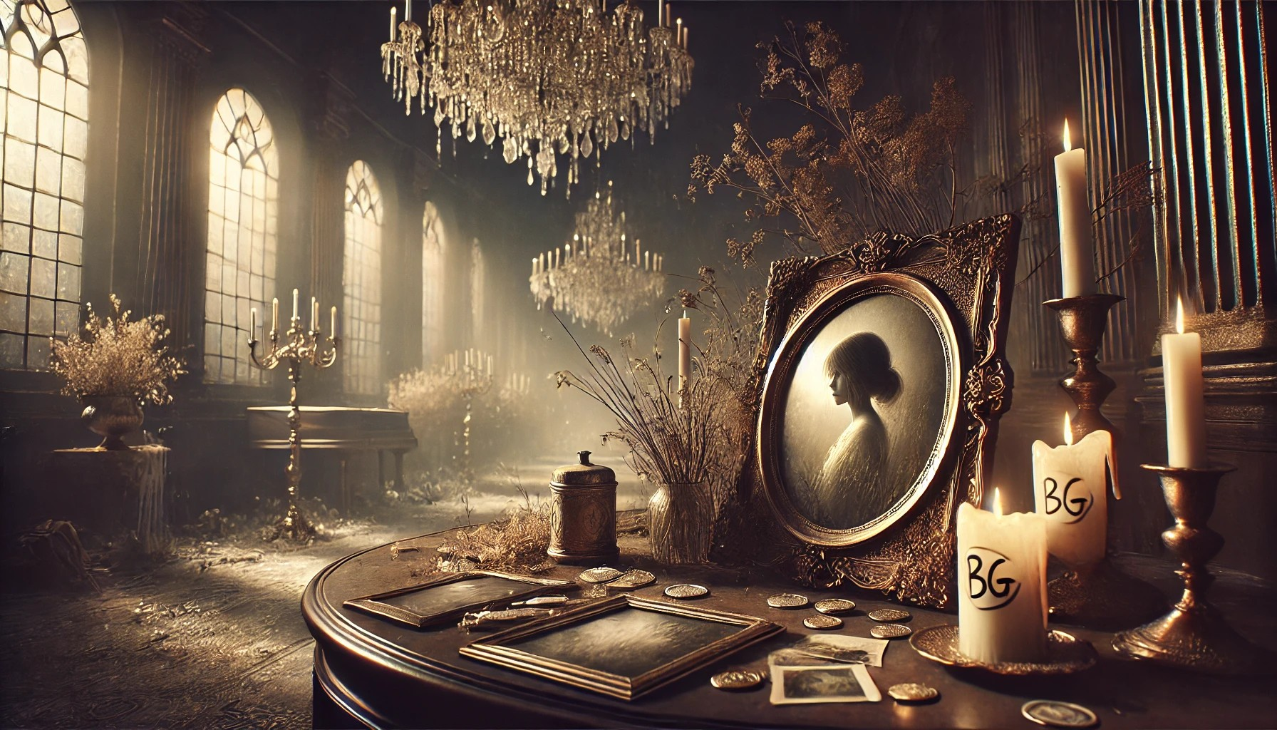 O salão à sua frente, com candelabros apagados e flores secas, parece ser o único objeto capaz de refletir algo além do momento presente. Ele é um lembrete do que foi, talvez um vestígio de uma reflexão, uma oração ou um pedido de algo perdido. Retratos de um tempo que ela talvez já tenha esquecido, ou que já não importa mais. O salão está ali, como um testemunho, mas não mais como um lugar de leitura, pois o que ela procurava naquele objeto já não a preenchia mais.