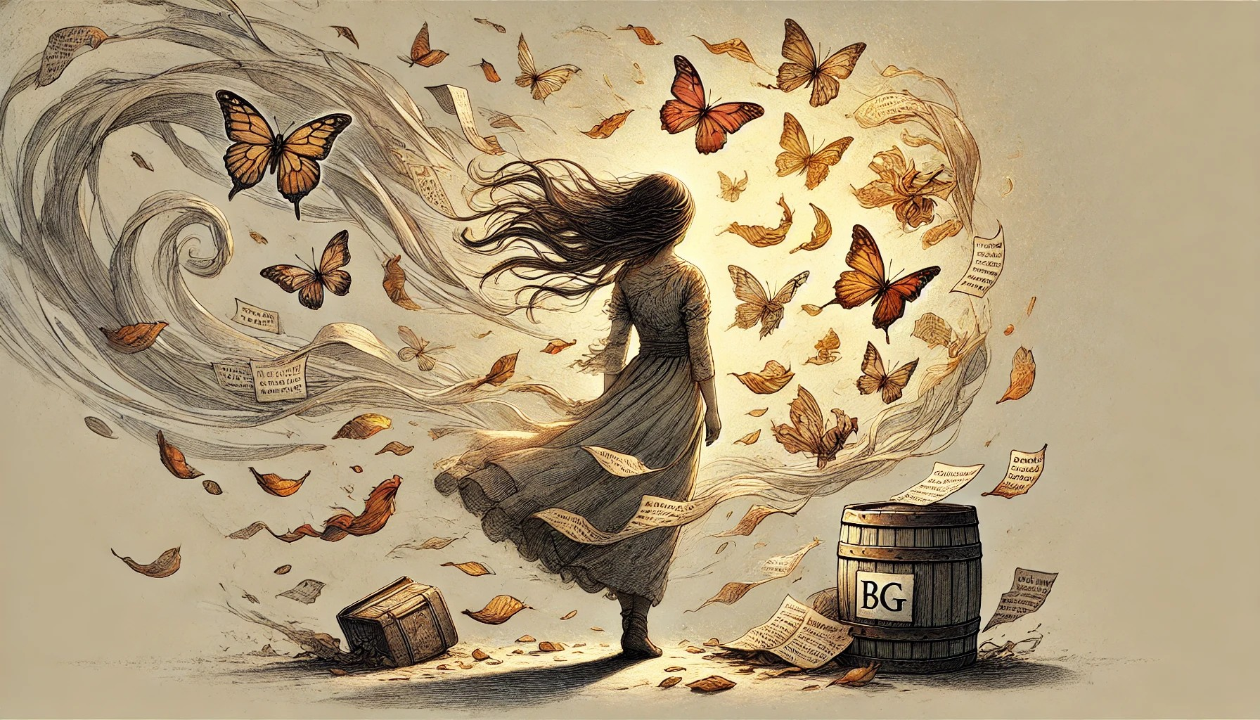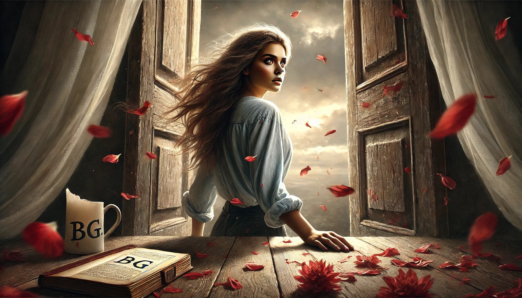 A jovem, com os olhos ainda voltados para o horizonte, sente uma mudança dentro de si. O medo, embora presente, já não é tão forte. O vento, agora um companheiro constante, a guia para a porta, para o além da sala, para o além das pétalas que caem. Ela sabe que as lembranças não se apagam, mas se transformam. E, ao dar o primeiro passo em direção ao mundo exterior, ela se dá conta de que, ao contrário do que pensava, as pétalas não se perdem no vento; elas seguem em direção a algo novo, algo que está por vir.