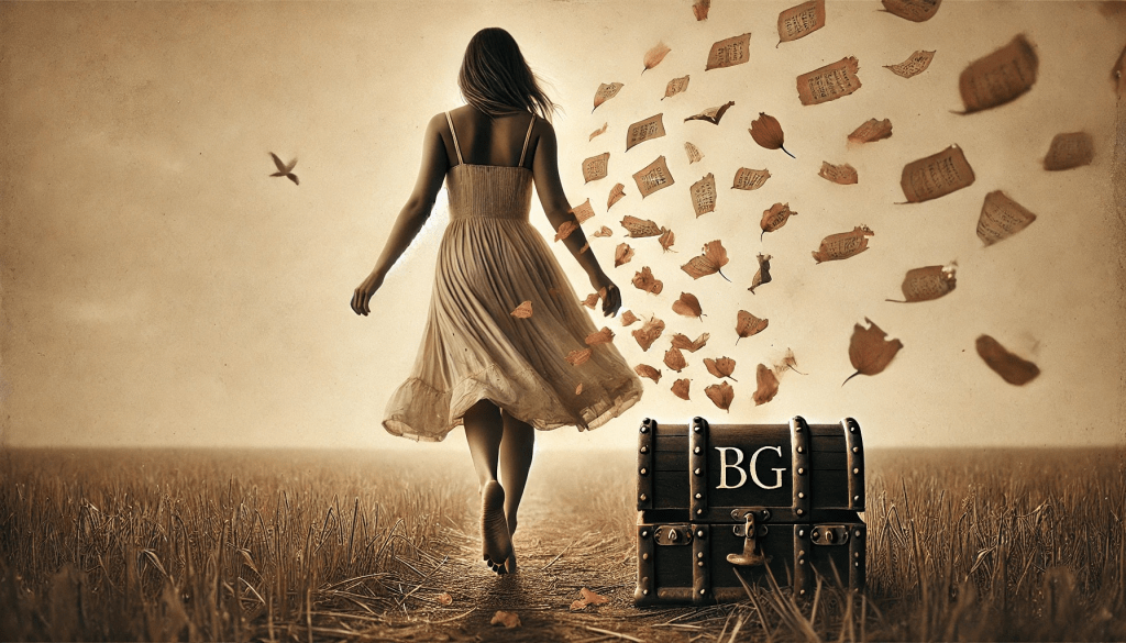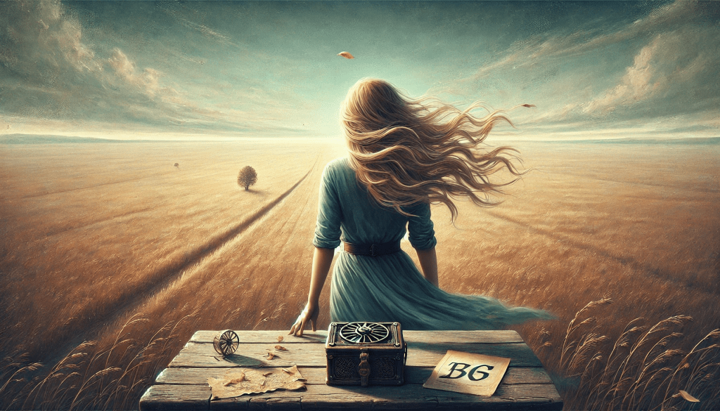 O campo à sua frente, vasto e aberto, não tem limites visíveis; ele se estende até onde os olhos podem alcançar, mas ela não teme a imensidão, não se perde na vastidão do desconhecido. Algo dentro dela, mais forte que o medo, lhe dá coragem. O vento que a acompanhava na sala, carregando as pétalas dispersas, agora se transforma em uma força que a impulsiona, como se o universo inteiro estivesse lhe dizendo: “É hora de seguir.”