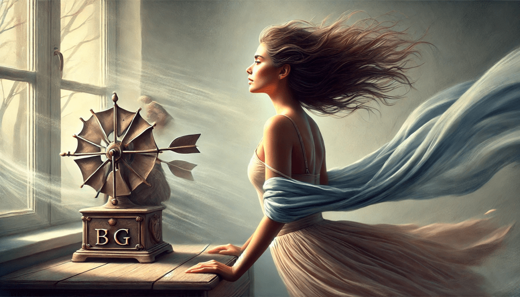 À medida que o vento ganha força, ela sente a liberdade que ele traz, uma liberdade que nunca soubera que existia dentro dela. O vento que, por tanto tempo, foi apenas uma presença ao seu redor, agora é uma força que a chama, que a orienta. Ele, como o tempo, não pode ser contido. Ela sente que não há mais nada que a prenda àquela sala, nem àquele lugar onde o passado se diluía, à medida que ela se libertava da dor e das saudades. O vento agora a carrega para um futuro que, embora incerto, é também infinitamente promissor.