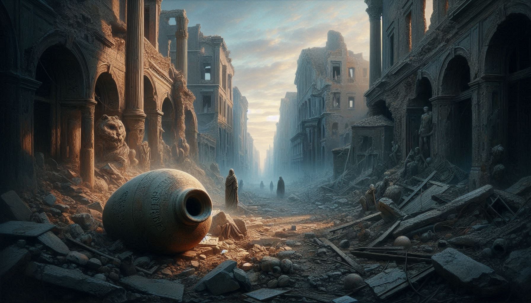 O mundo parece ter parado no tempo. A guerra, em sua imensidão destrutiva, não deixa mais espaço para o som da esperança. Onde antes havia movimento e vida, agora há apenas um vazio ensurdecedor, um silêncio profundo que se instala nas casas, nas ruas, nas mentes. Cada passo dado parece ressoar como um eco distante, sem direção, sem significado. Os corações, outrora cheios de sonhos e anseios, agora se encontram vazios, como uma taça quebrada que nunca mais será preenchida.