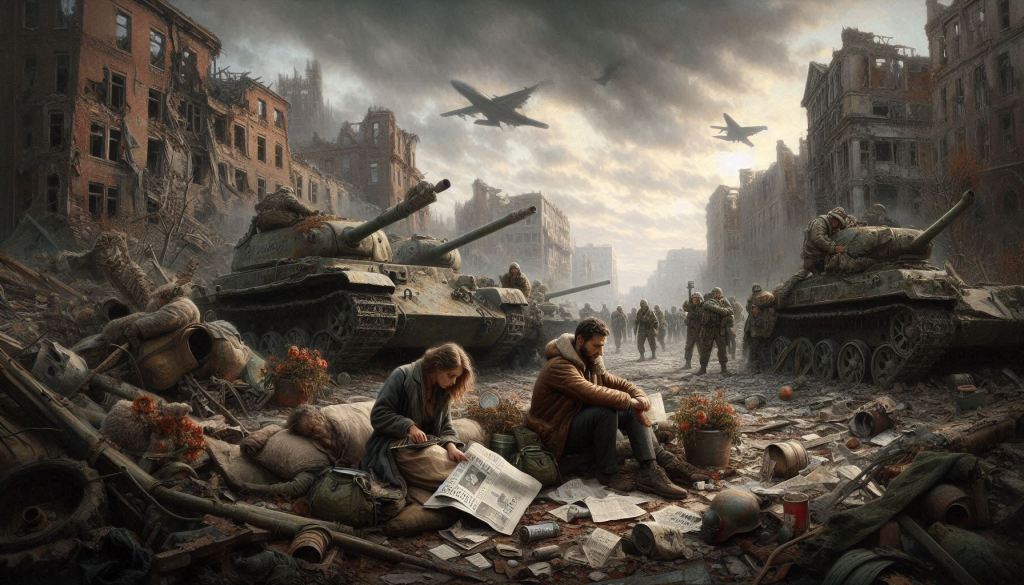 Nas sombras da noite, a solidão se estende como um manto pesado, cobrindo os corpos cansados e as almas despedaçadas. O silêncio é absoluto, não há mais risos ou conversas, apenas o som do vento que atravessa as ruas desertas e o farfalhar das folhas secas que caem das árvores, como se a própria natureza estivesse em luto. Cada passo dado parece ecoar mais forte, amplificando o vazio imenso que domina a paisagem. As casas, que antes vibravam com o movimento da vida, agora são apenas cascas vazias, suas paredes testemunhas de um tempo que já se foi.