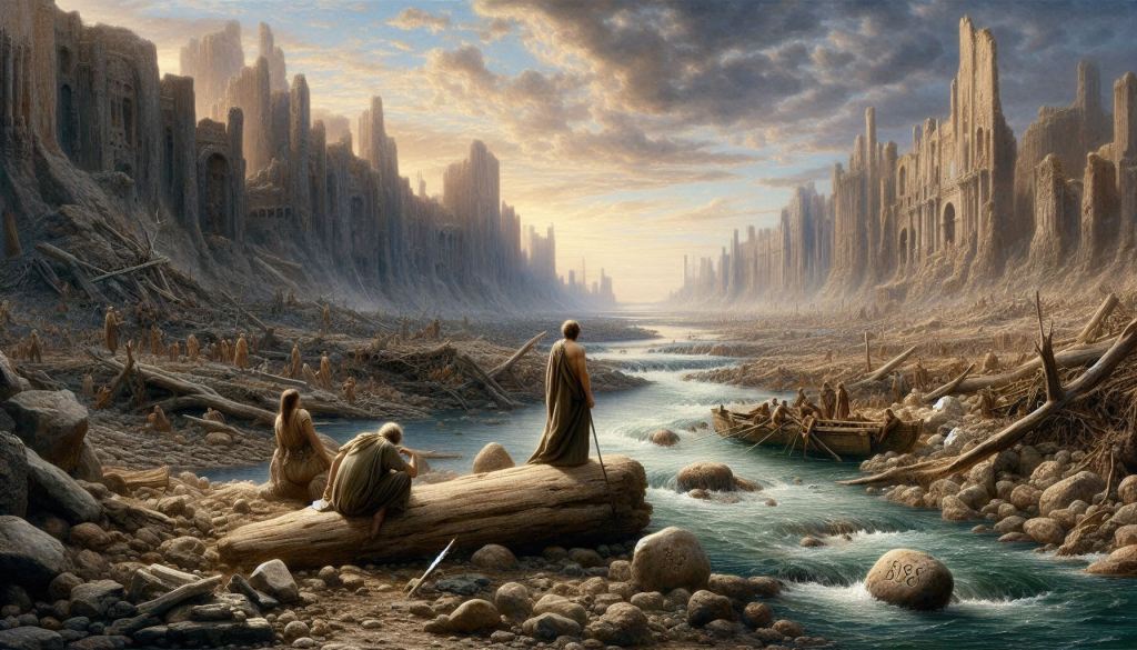 E, no entanto, o rio da vida também ensina uma lição sutil. Ele não é apenas um caminho para a morte ou para o fim. Ele é, ao mesmo tempo, o meio de transformação. Como as águas podem suavizar as pedras mais ásperas, o rio também tem o poder de curar as feridas mais profundas. Ao seguir seu curso, ele lembra a todos que a vida, com sua imensa complexidade, também carrega em si a possibilidade de renovação. Ao se deixar levar pelas águas, o ser humano aprende a confiar, a fluir com o tempo, a aceitar que o movimento constante da vida, com suas alegrias e sofrimentos, é o que nos define.