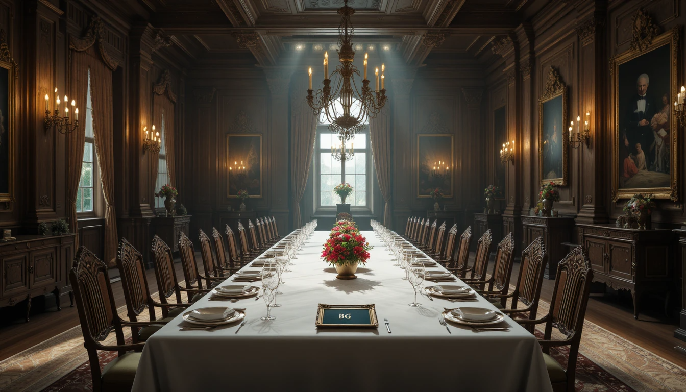 O salão de jantar parecia conservar o eco da refeição, como se as palavras ali pronunciadas ainda circulassem entre as cadeiras vazias.